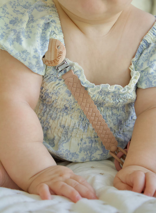 2-Pack Woven Silicone Pacifier Clip || Cerulean + Clay