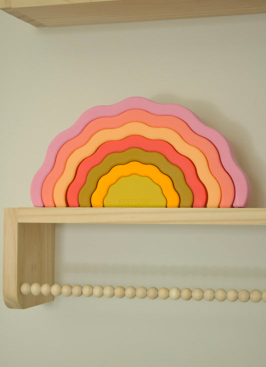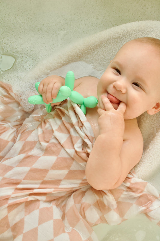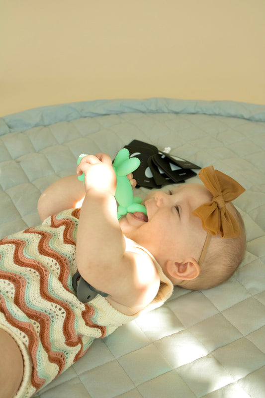 Silicone is a nontoxic, waterproof & extremely durable material with earth friendly benefits. It's easy to keep clean & can withstand high heat sterilization, ensuring super hygienic conditions for your little one. It's also naturally bacteria resistant, velvety soft to the touch & super malleable, making it perfect for soothing sensitive gums & preventing injuries during play (no more stepping on sharp toys)! It can withstand even the wildest of play sessions & is the perfect material for the bath, pool, or beach. Rest assured; we only carry products that we would give to our own children & our silicone products will always get our stamp of approval. They’re of the highest quality & will stick around to pass down to the next generation of littles!
