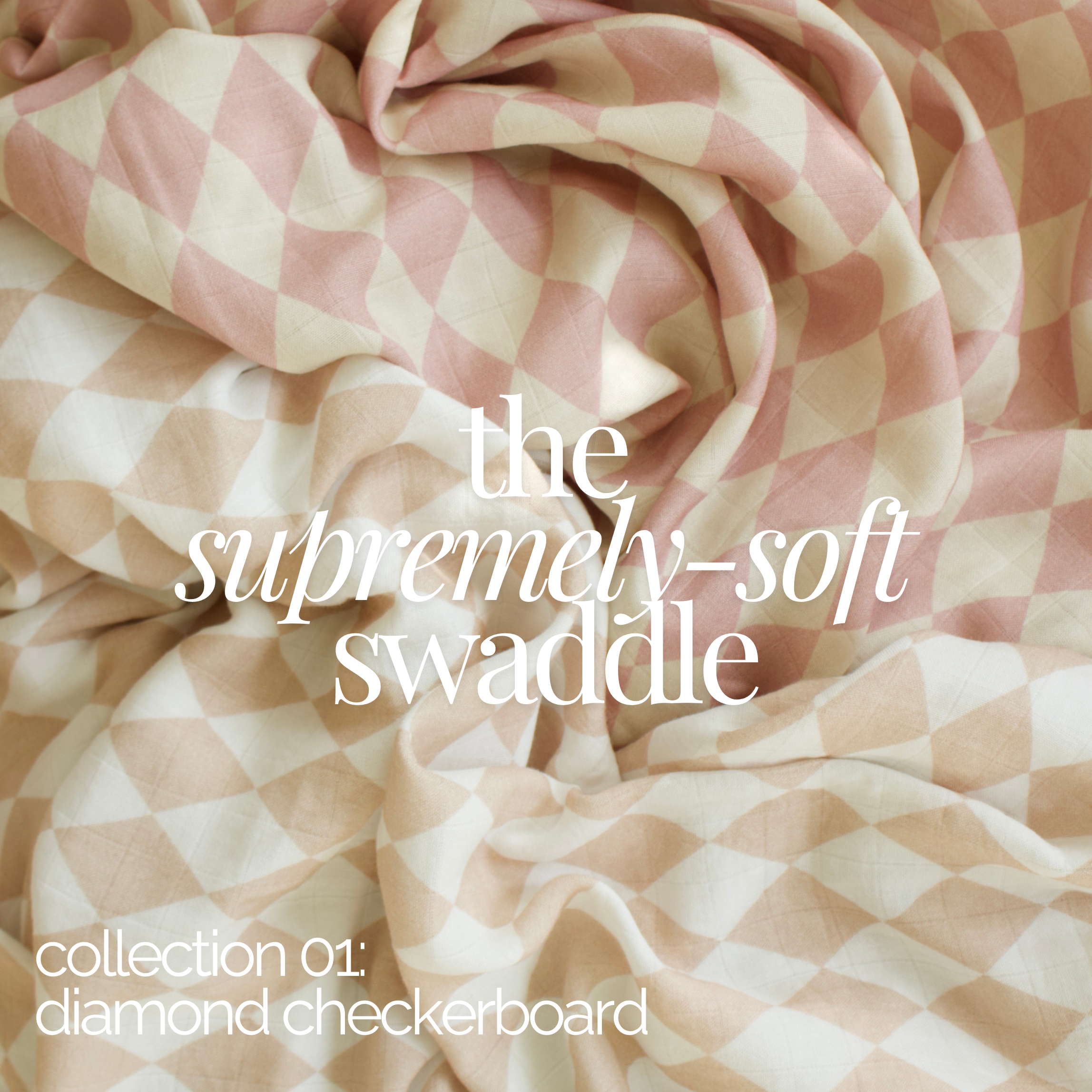 Supremely-Soft Swaddle || Cloud + Sand Diamond Check