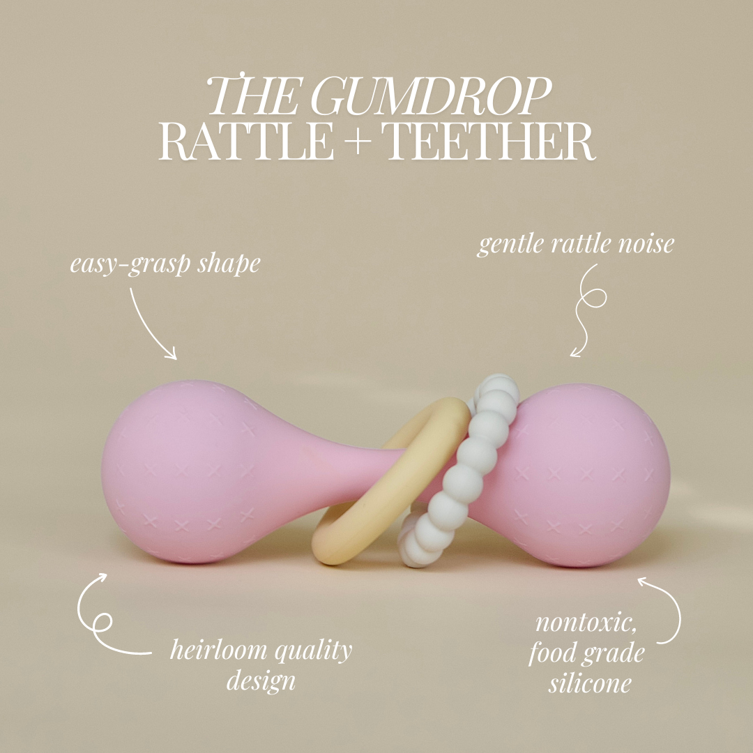 Discover our super sweet baby rattle that doubles as the perfect nontoxic & durable teether.