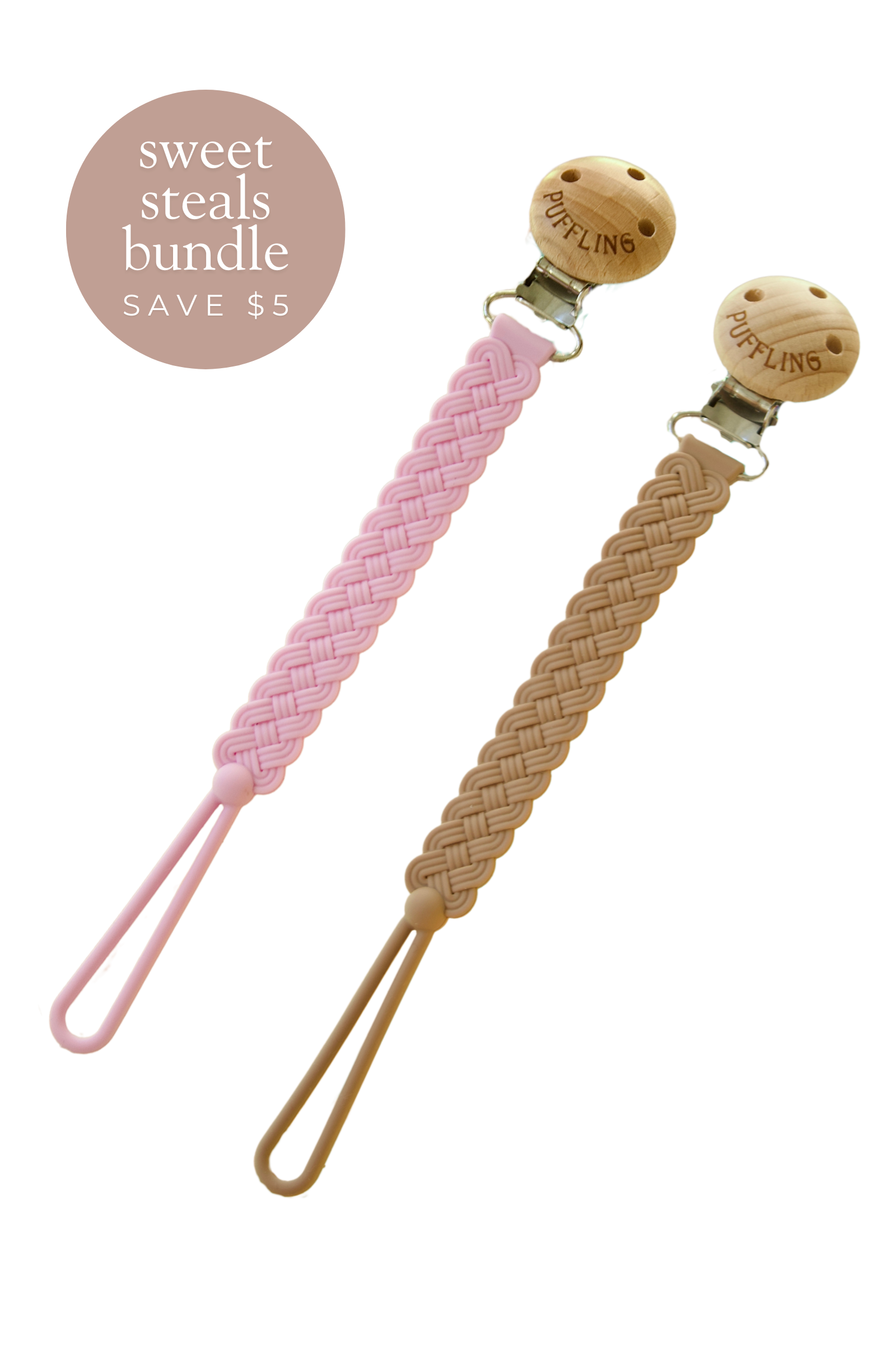 2-Pack Woven Silicone Pacifier Clip || Orchid + Clay